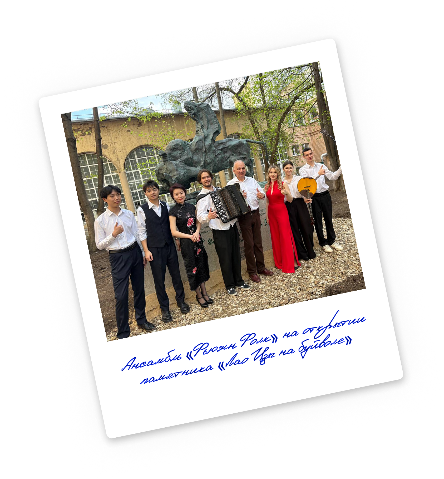 Выступление «Фьюжн Фолк» на открытии памятника «Лао Цзы на буйволе». Автор скульптуры - всемирно известный китайский скульптор У Вэйшань. Скульптура преподнесена Строгановке в честь 200-летия образования Университета.